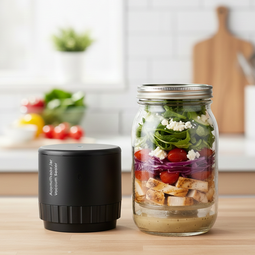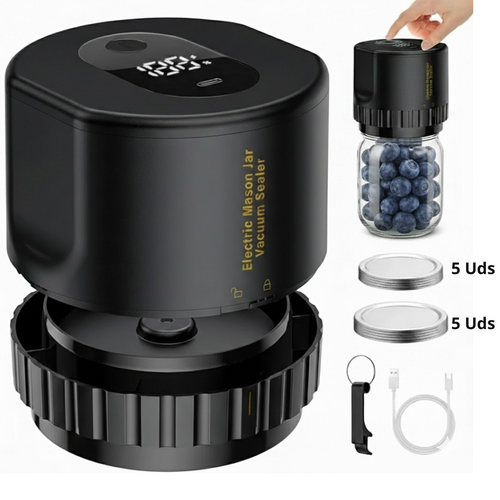 Nuestro sellador al vacío de botes de conserva extraerá todo el aire de cualquier frasco, logrando un sellado hermético perfecto. ¡Esto mantiene tus alimentos frescos por más tiempo y a las plagas de la despensa fuera!
