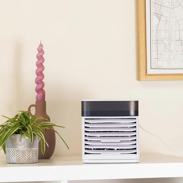 Refresca tus espacios de forma práctica y eficiente con el Mini Climatizador Portátil.